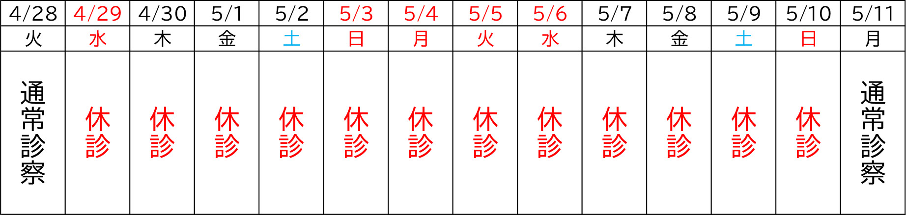 ゴールデンウィークの休診に関するお知らせ